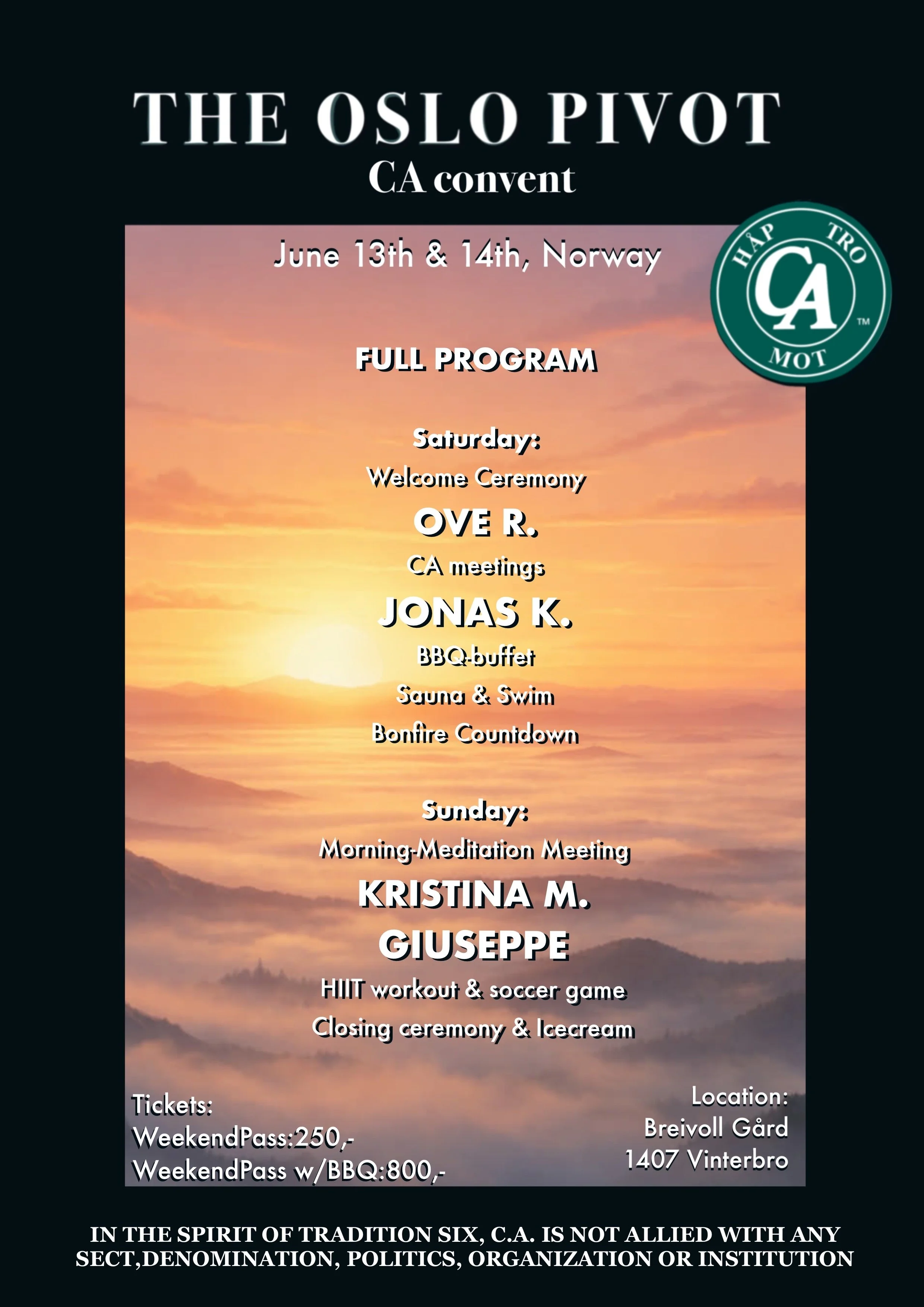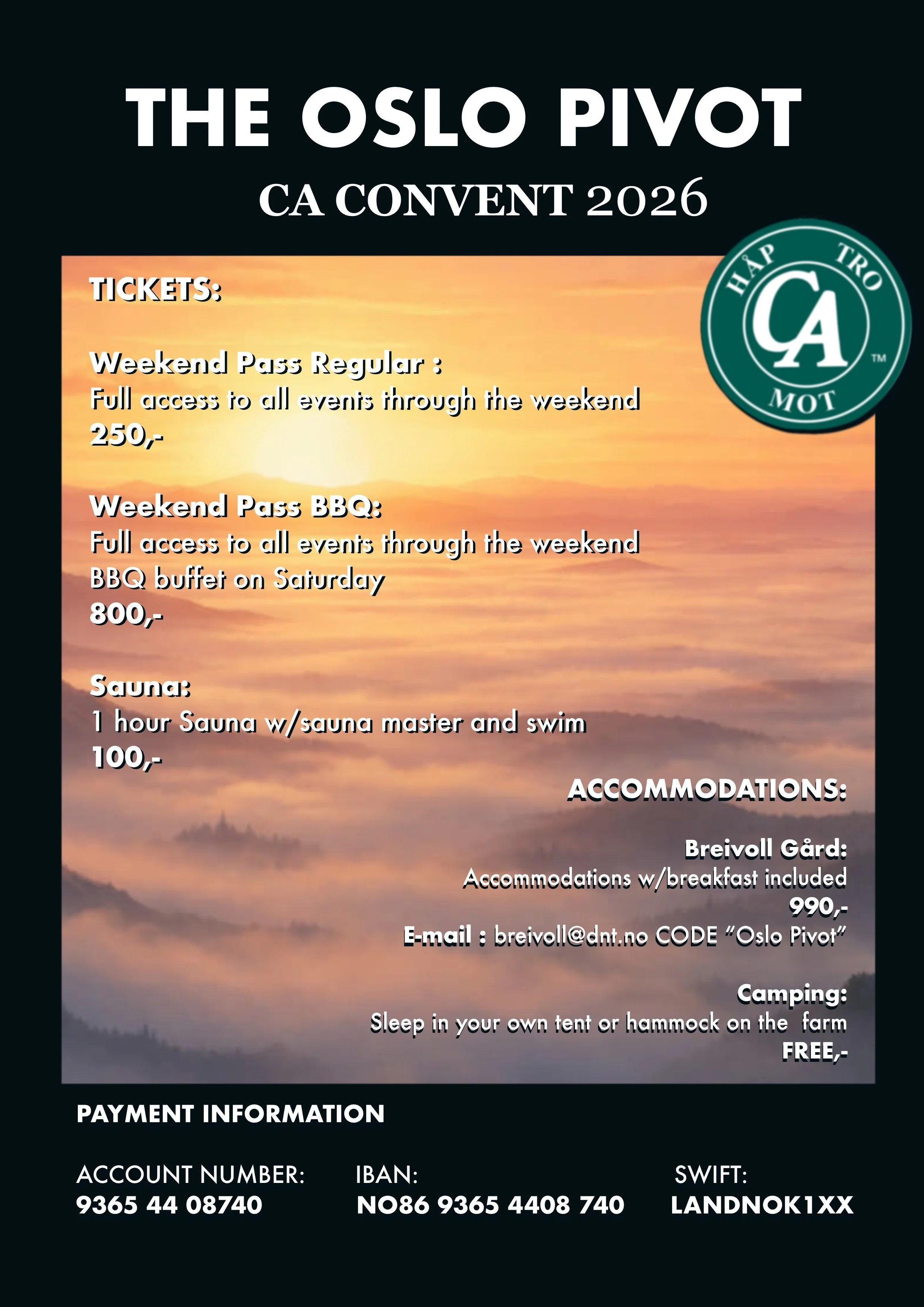 The Oslo pivot CA convent 2026 27. mars Skrevet av CA Norge 13. og 14. mars 2026CA convent CA NorgeBreivoll gård1407 Vinterbro CA Norge